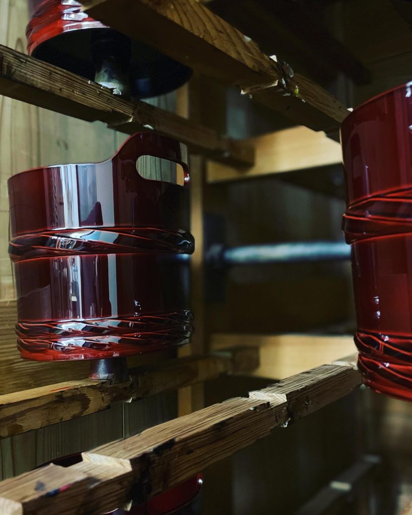 漆に硬化剤や促進剤を使わず、本来の漆かわきを活かしスプレーガンで塗装しています。